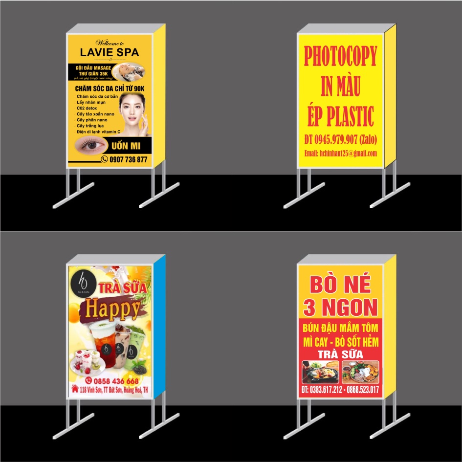 Làm biển vẫy dạng đứng 2 mặt – Sản xuất mẫu bảng hiệu đứng 2 mặt theo yêu cầu giá rẻLàm bảng quảng cáo đứng tiệm tóc