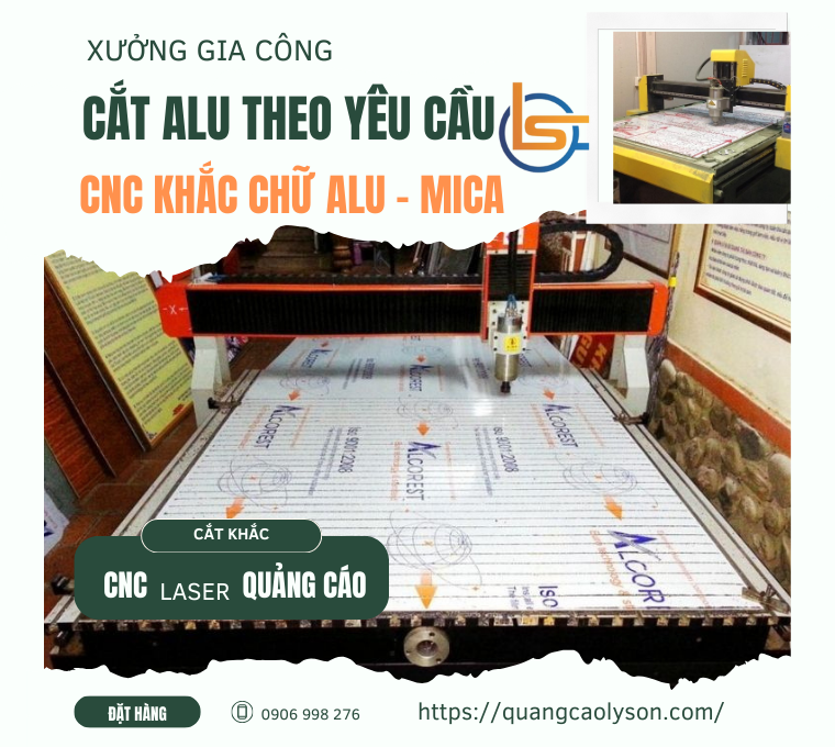 Quảng cáo Lý Sơn ngoài cung cấp vật tư tấm alu giá rẻ tại TPHCM với nhiều thương hiệu alu khác nhau, chúng tôi còn có xưởng gia công cắt tấm alu, cắt tấm nhựa mica, cắt tấm formex, cnc alu bằng các loại máy cnc laser hiện đại nhất các quận của TPHCM, tốc độ cắt gia công nhanh và chính xác từng chi tiết nhỏ quý khách có thể đến và trải nghiệm tận xưởng của Quảng Cáo Lý Sơn
