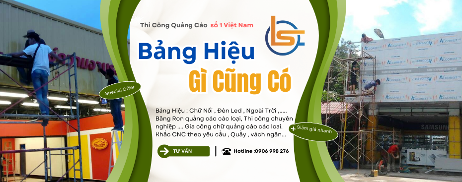 Nội dung: Nội dung bảng hiệu có thể được in decal, sơn trực tiếp hoặc gắn chữ nổi bằng mica, alu, inox,…