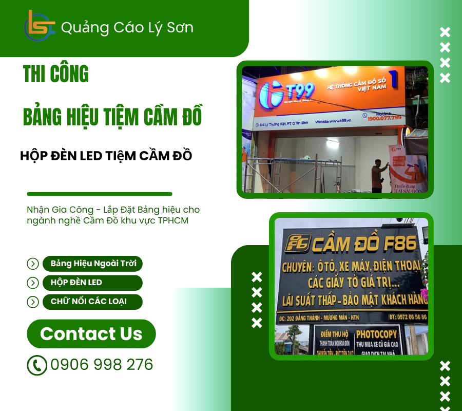Chuyên thi công bảng hiệu tiệm cầm đồ tphcm – hãy liên hệ cho hotline của Quảng Cáo Lý Sơn để tư vấn báo giá